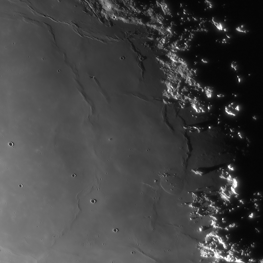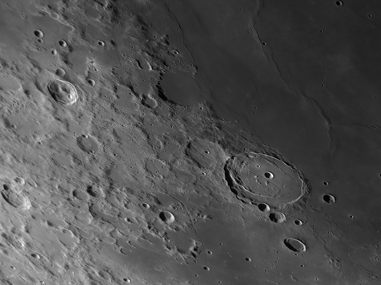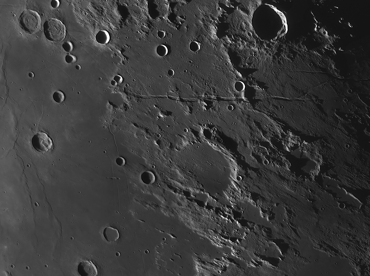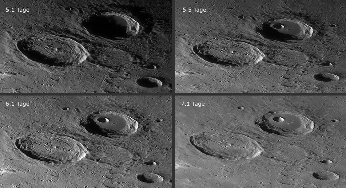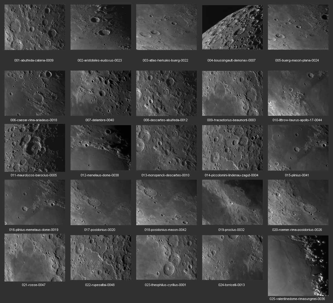 Bilddetails Bild 016 - zeigt die Lavagrenze zwischen Mare Serenitatis und Mare Traquilitatis und den jungen Krater Plinius, der deutlich jünger als die Marelaven sind. Bild 025 - zeigt das große flache intrusive Plateau Valentine Dome. Detaillierte Beschreibungen weiterer außergewöhnlicher oder einzigartigen Strukturen bei diesem Mondalter finden Sie zusätzlich in diesem pdf-file |