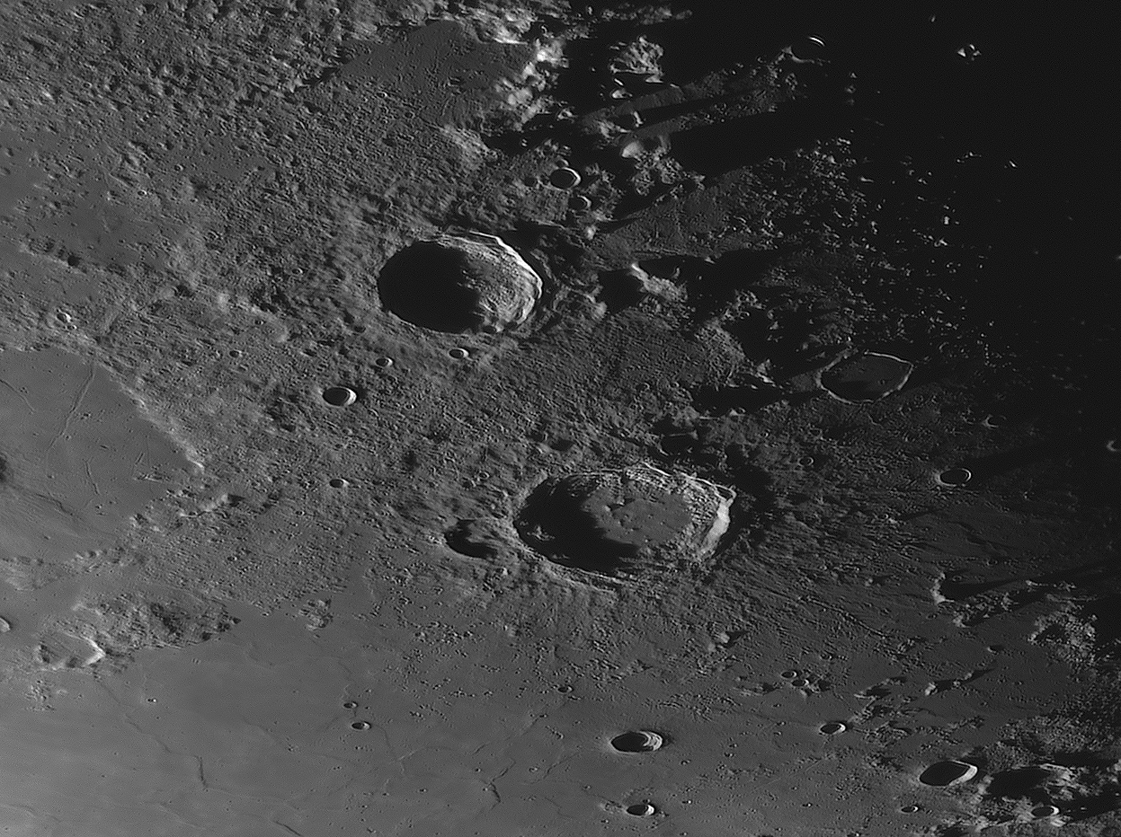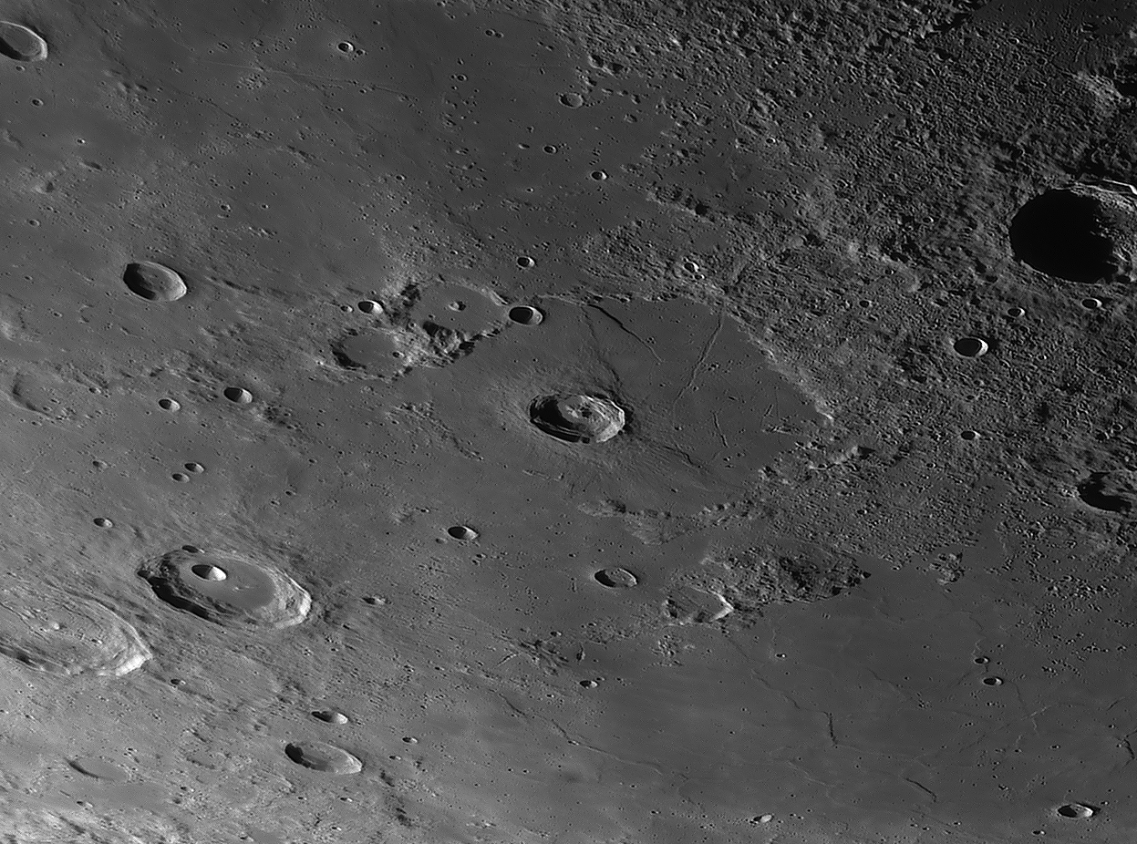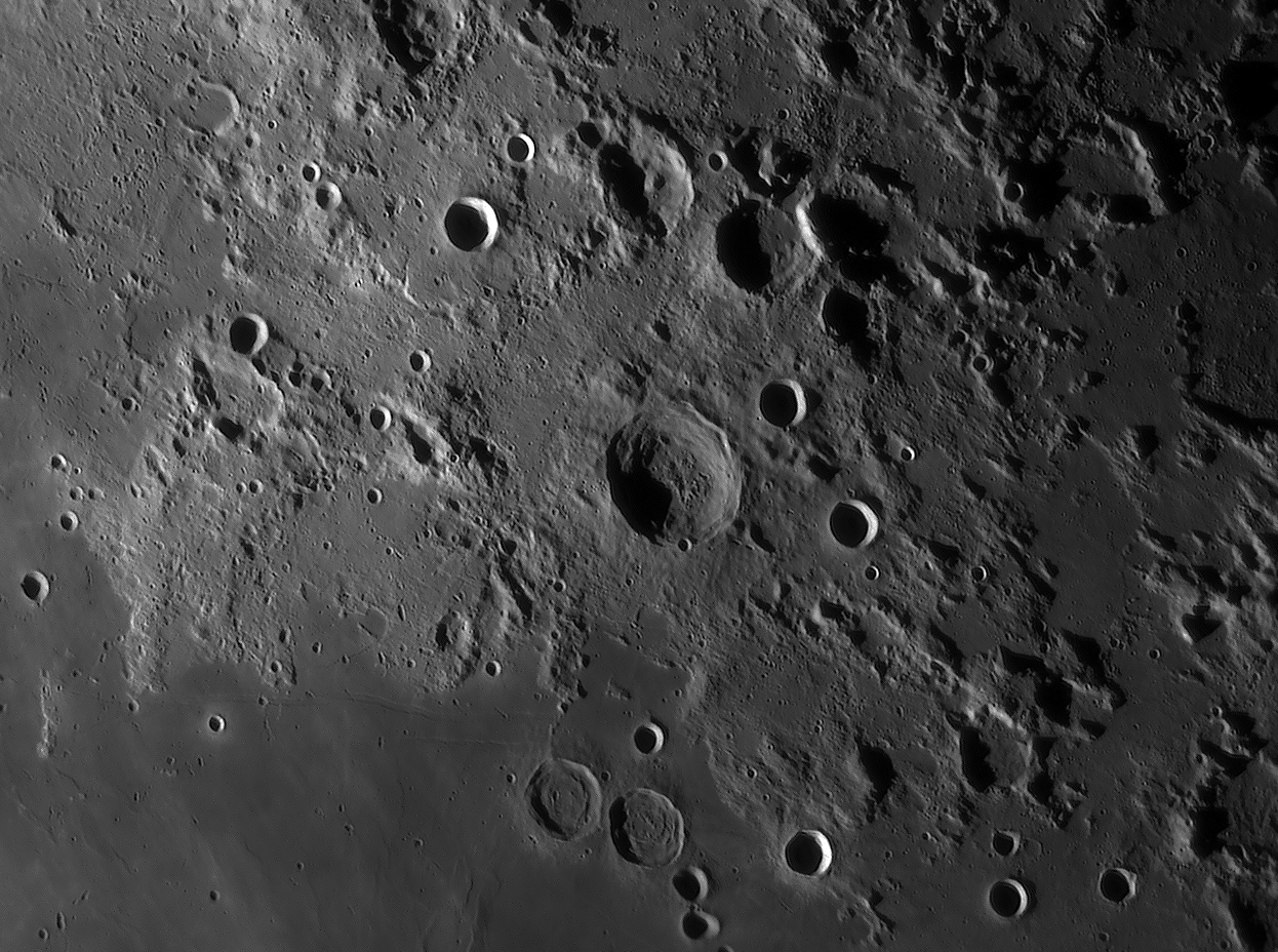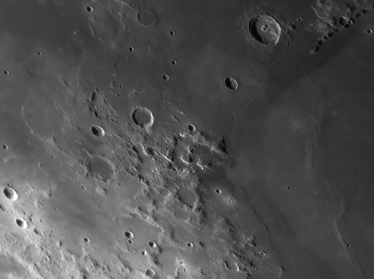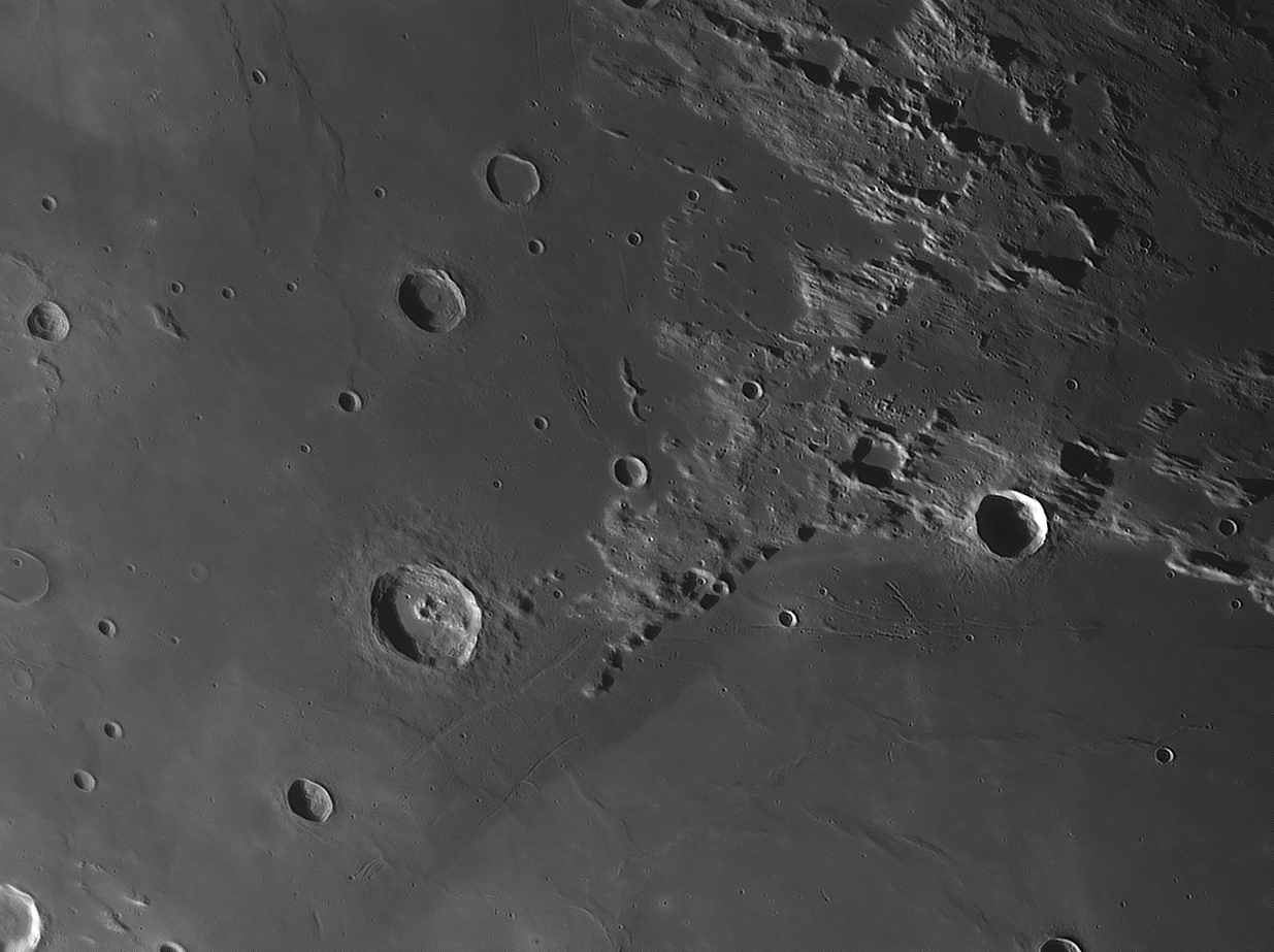 Bilddetails Bild 016 - zeigt die Lavagrenze zwischen Mare Serenitatis und Mare Traquilitatis und den jungen Krater Plinius, der deutlich jünger als die Marelaven sind. Bild 025 - zeigt das große flache intrusive Plateau Valentine Dome. Detaillierte Beschreibungen weiterer außergewöhnlicher oder einzigartigen Strukturen bei diesem Mondalter finden Sie zusätzlich in diesem pdf-file |