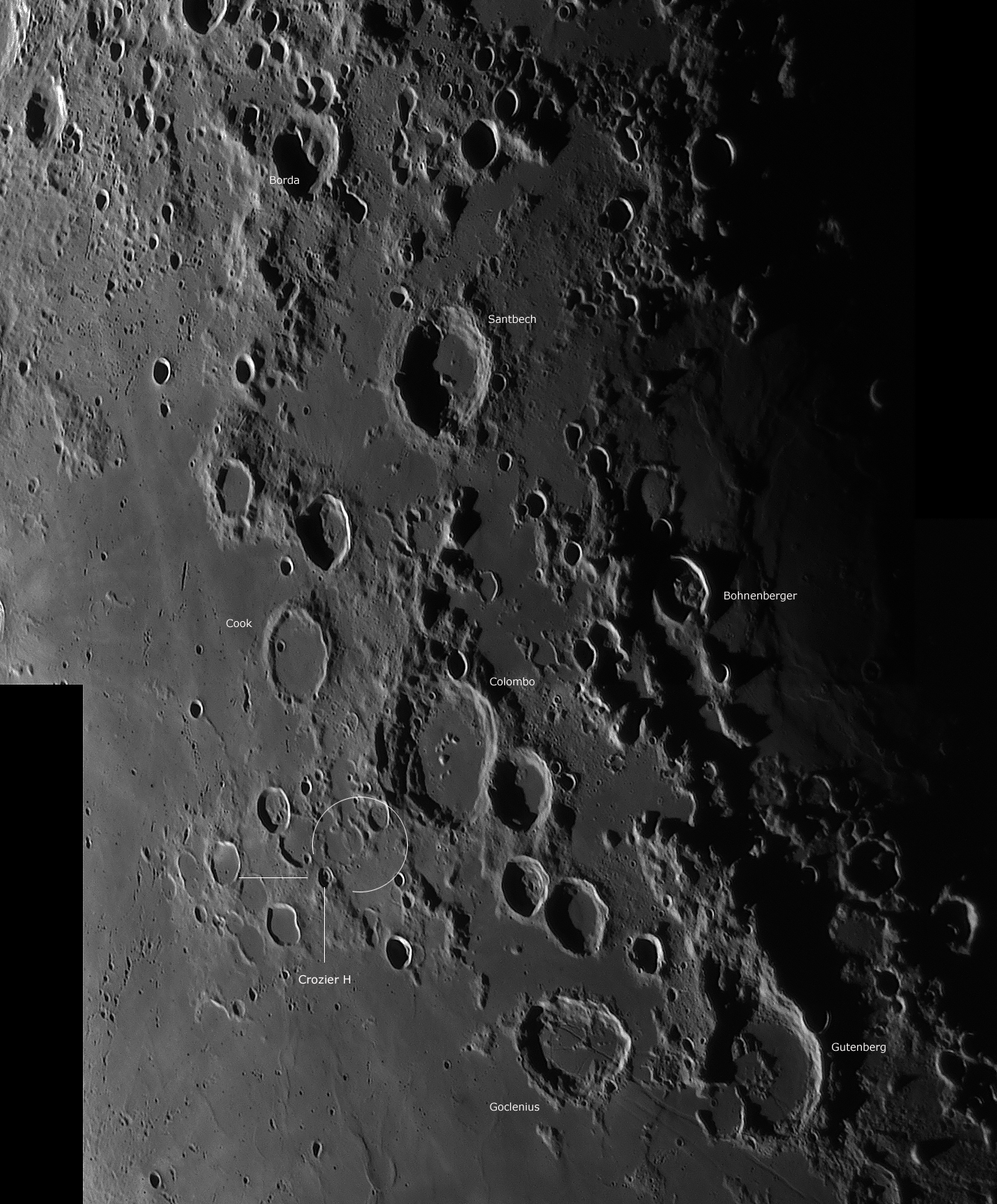 bright ejecta south of the crater Rosse (11 km). The largest craters have a