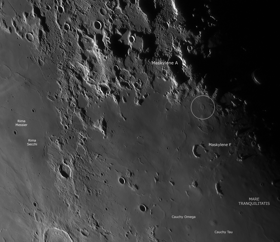 dome between the craters Maskelyne A and Maskelyne F. It has a