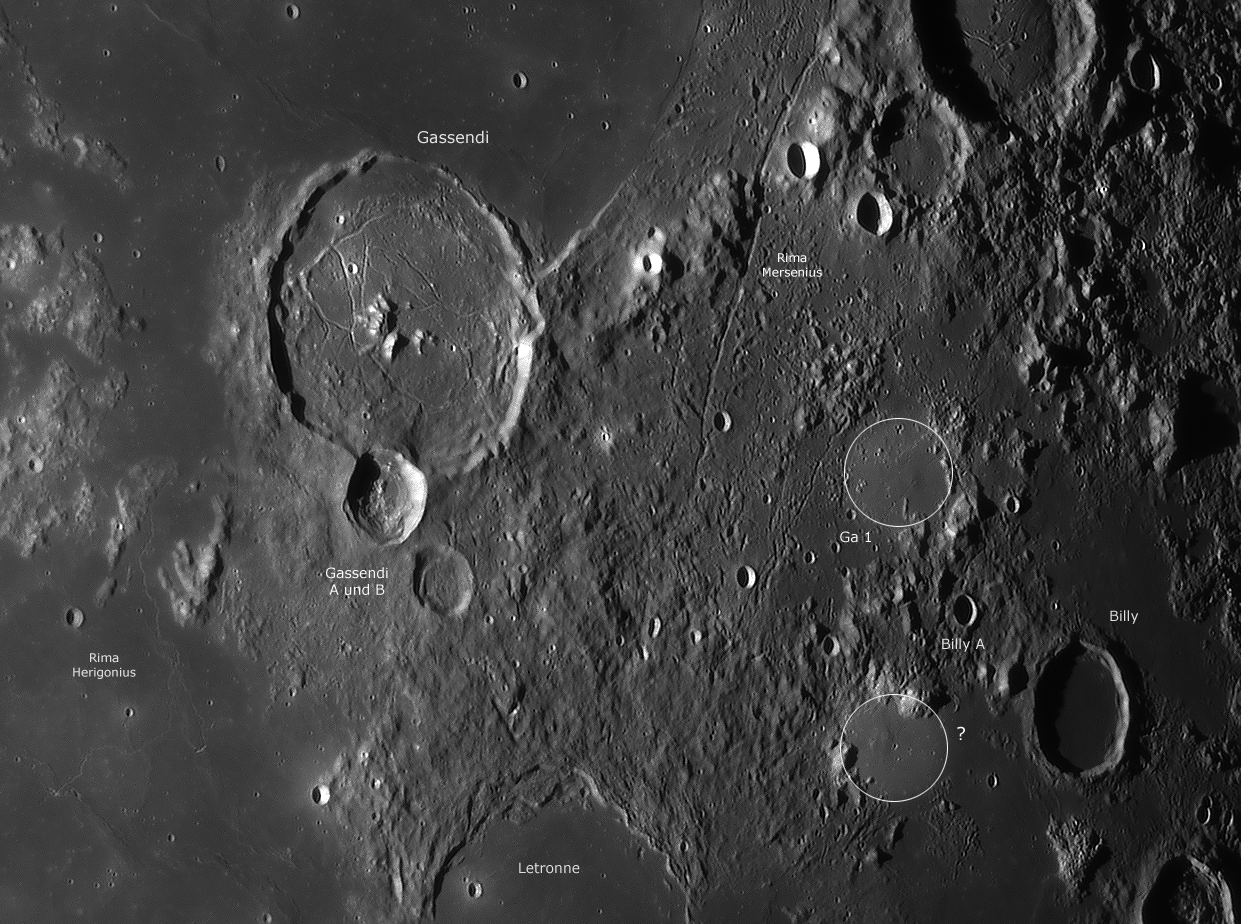 of Gassendi there is the Rima Herigonius. It is a sinusoidal rille which was a