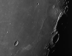 seems to be crossed by rilles. Directly east of it there is the mysterious