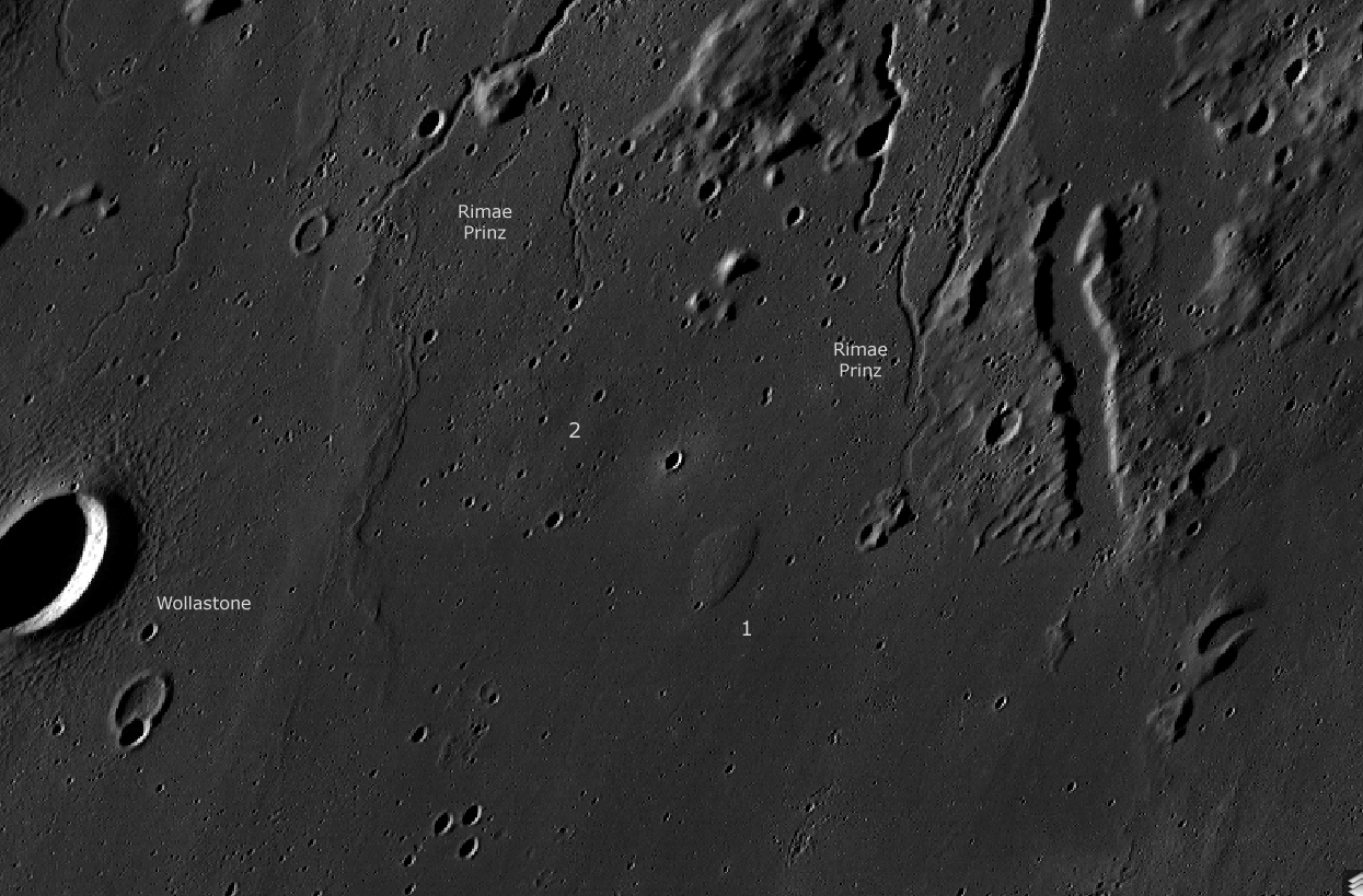of Aristarchus near the small crater Wollaston. The domes are not located on
