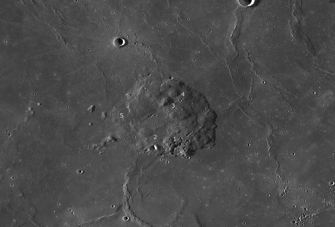 effusive domes Reiner 1 to 5 and the area of the Marius Hills with Rima Marius