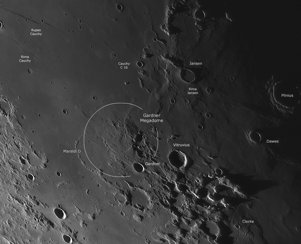 the 19 km wide crater Gardner is classified as a putative megadome plateau in