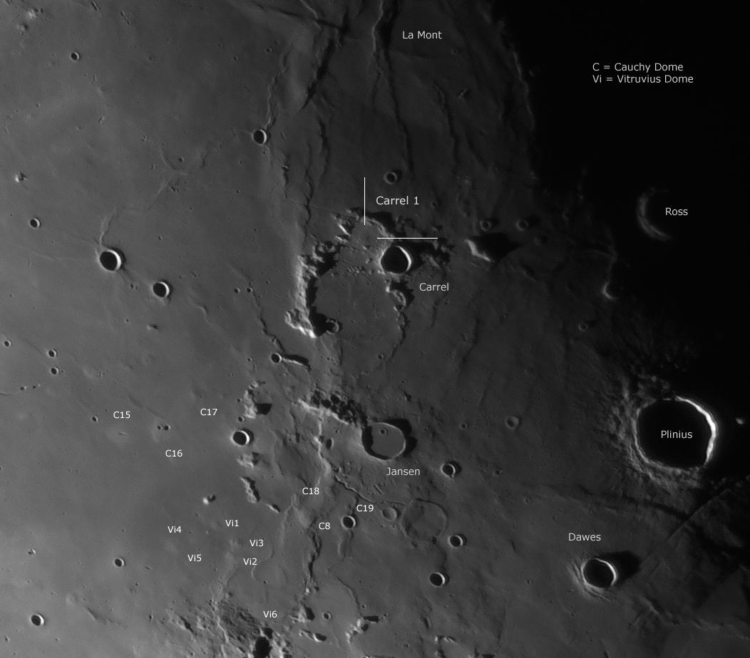 8 C) one of the largest on the front of the moon. The Cauchy domes are