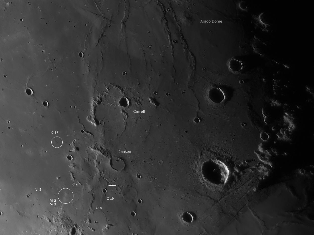 large dome fields around the crater Jansen and Cauchy. Directly to the south,