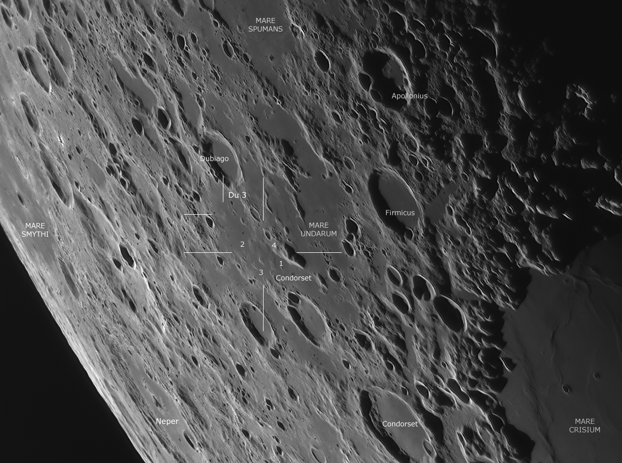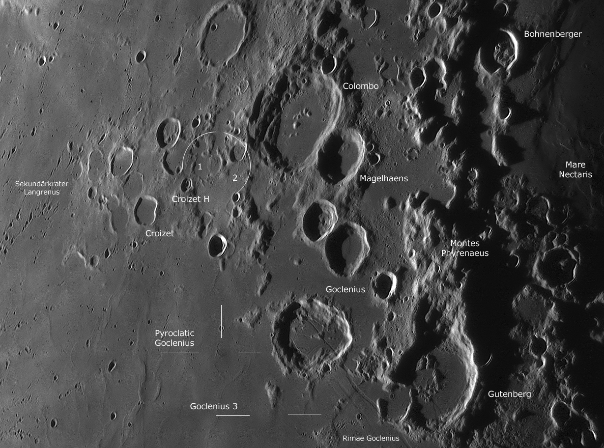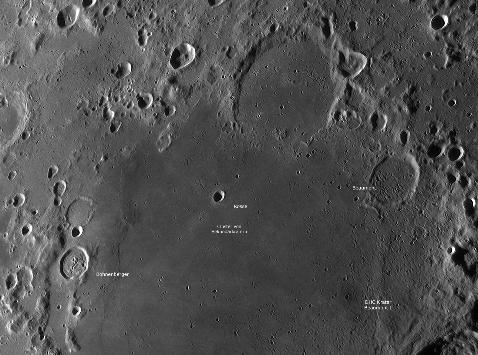oben. Zusätzlich im Bild der eindrucksvolle Dark Halo Krater Beaumon L mit
