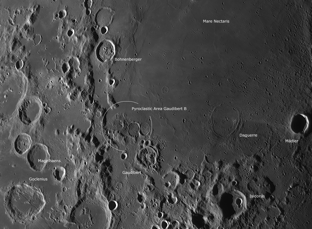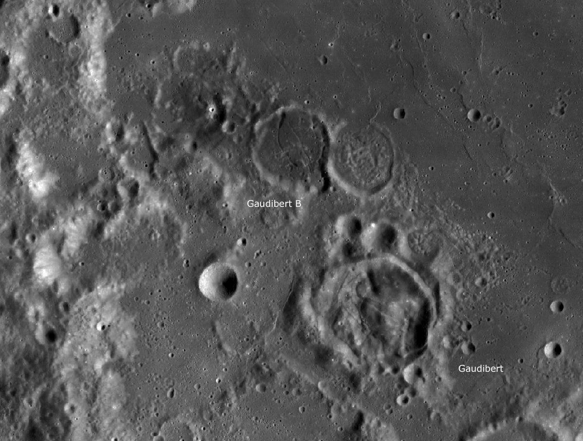 Gaudiber B liegt der Krater Gaudibert, dessen Kraterboden aussieht, als ob er