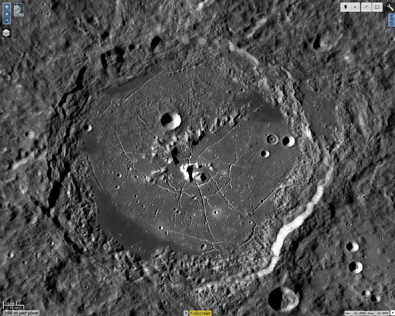 den Krater, wie wir ihn von der Erde aus niemals sehen können. Auf dem