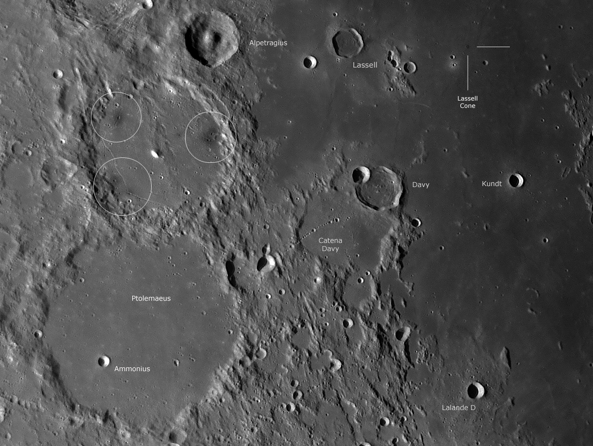 sichtbar. Rechts im Bild der lunare Cone Lassell mit einer Höhe von knapp