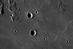 90 Meter. Zum Größenvergleich: der relativ junge Krater Lassell D