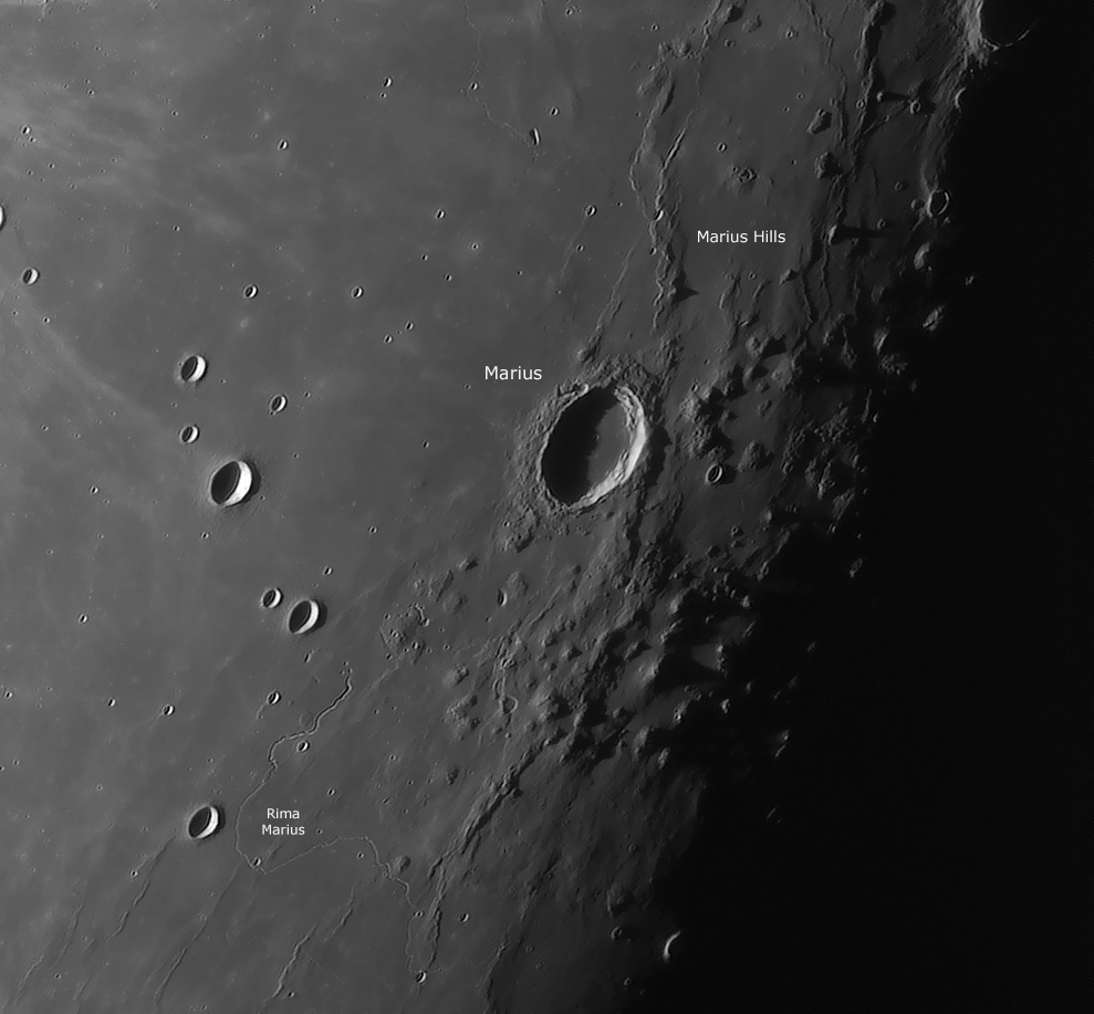 der Rima Marius und Rima Galileo bei einem Beleuchtung von ca. 92%. |