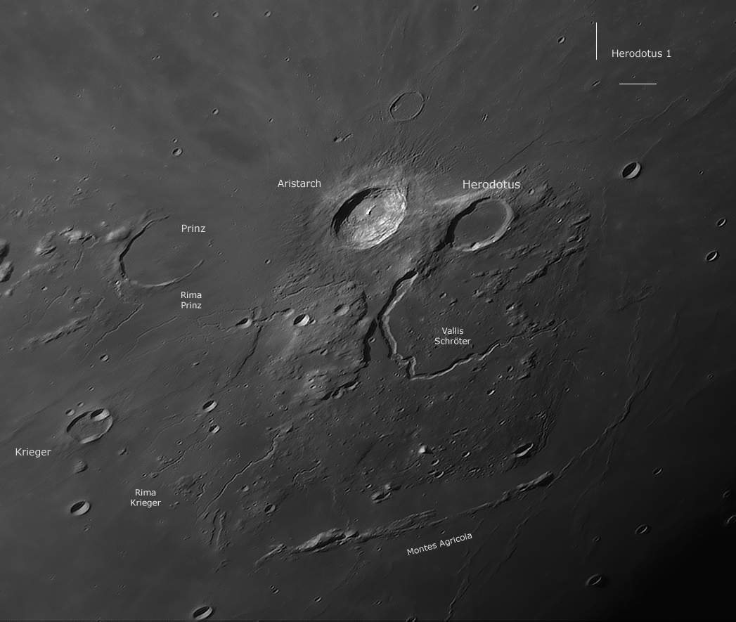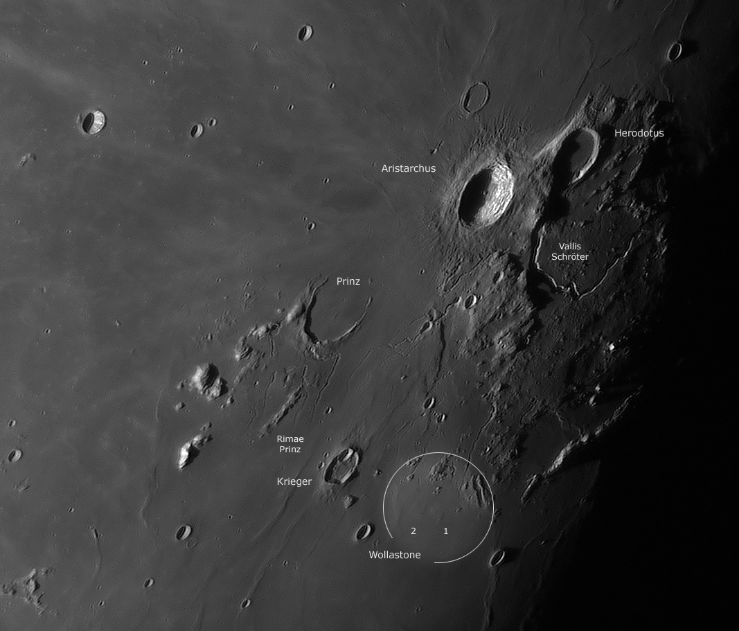 nördlich Aristarchus in der Nähe des kleinen Kraters Wollaston. Die