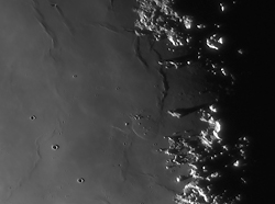 Der Valentine Dome ist kaum noch zu sehen. Die Bergspitzen der Montes Caucasus