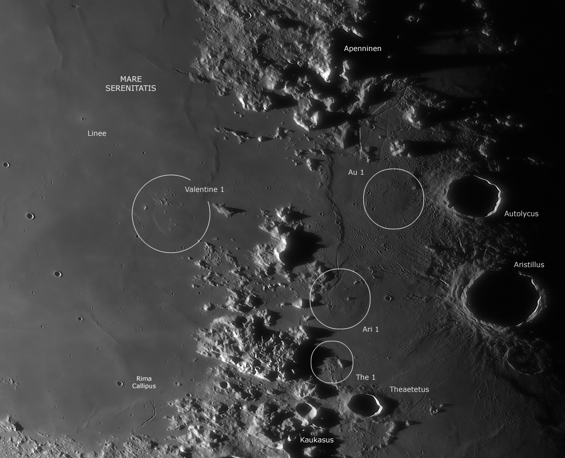 Autolycus, Theaetetus, Rima Hadley (Apollo 15), Palus Putredinus, Valentine