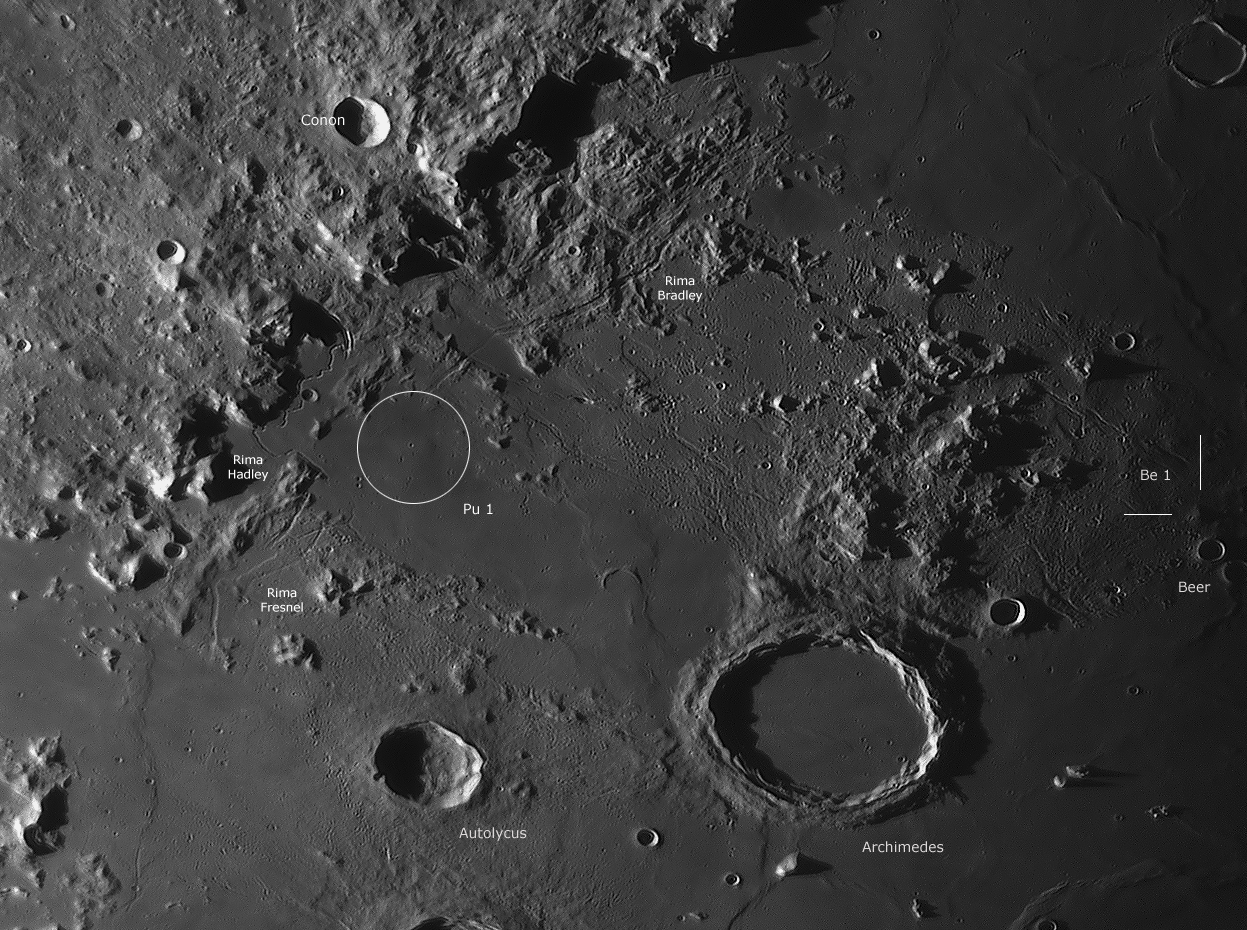 sehr günstig um Kleinstkrater in Archimedes (83 km) zu beobachten. In