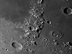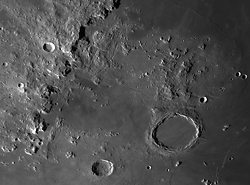 des kleinen Kraters Beer (10 km) sichtbar (rechter Bildrand). |